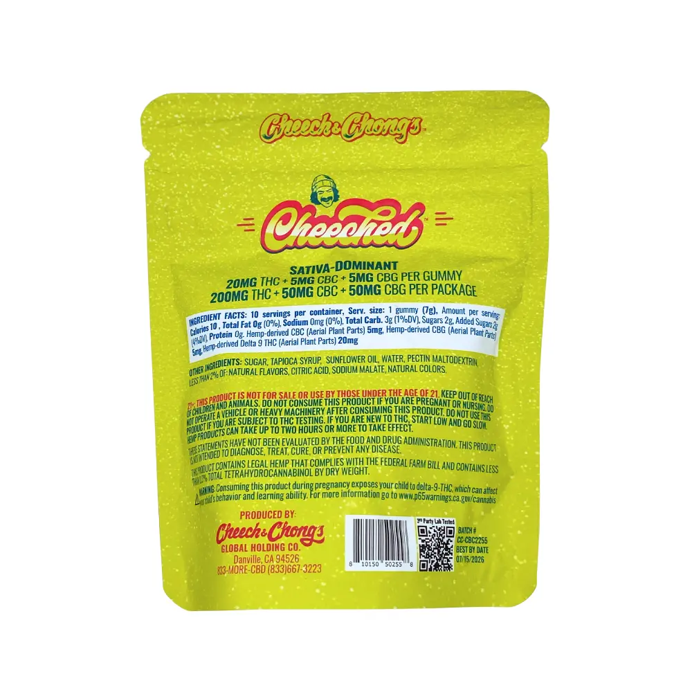 - Ingredients: 20mg Delta 9, 5mg CBC, and 5mg CBG per gummy