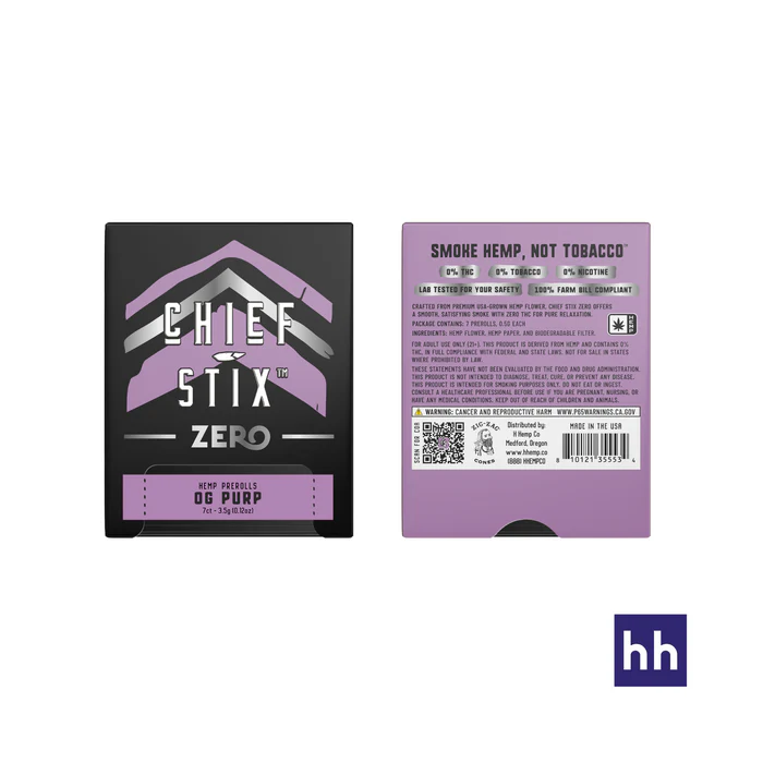 Looking for a smooth, satisfying smoke without the harsh side effects of tobacco or nicotine? Meet Chief Stix Zero — a pure hemp preroll experience made with 100% premium, sun-grown hemp flower. Completely free of nicotine, and tobacco, this 7-count pack is the go-to choice for wellness-minded smokers seeking a cleaner way to unwind. Whether you’re vibing with fruity OG Purp or going classic with the Natural blend, each preroll is packed fresh in a reusable tin to lock in aroma and flavor.