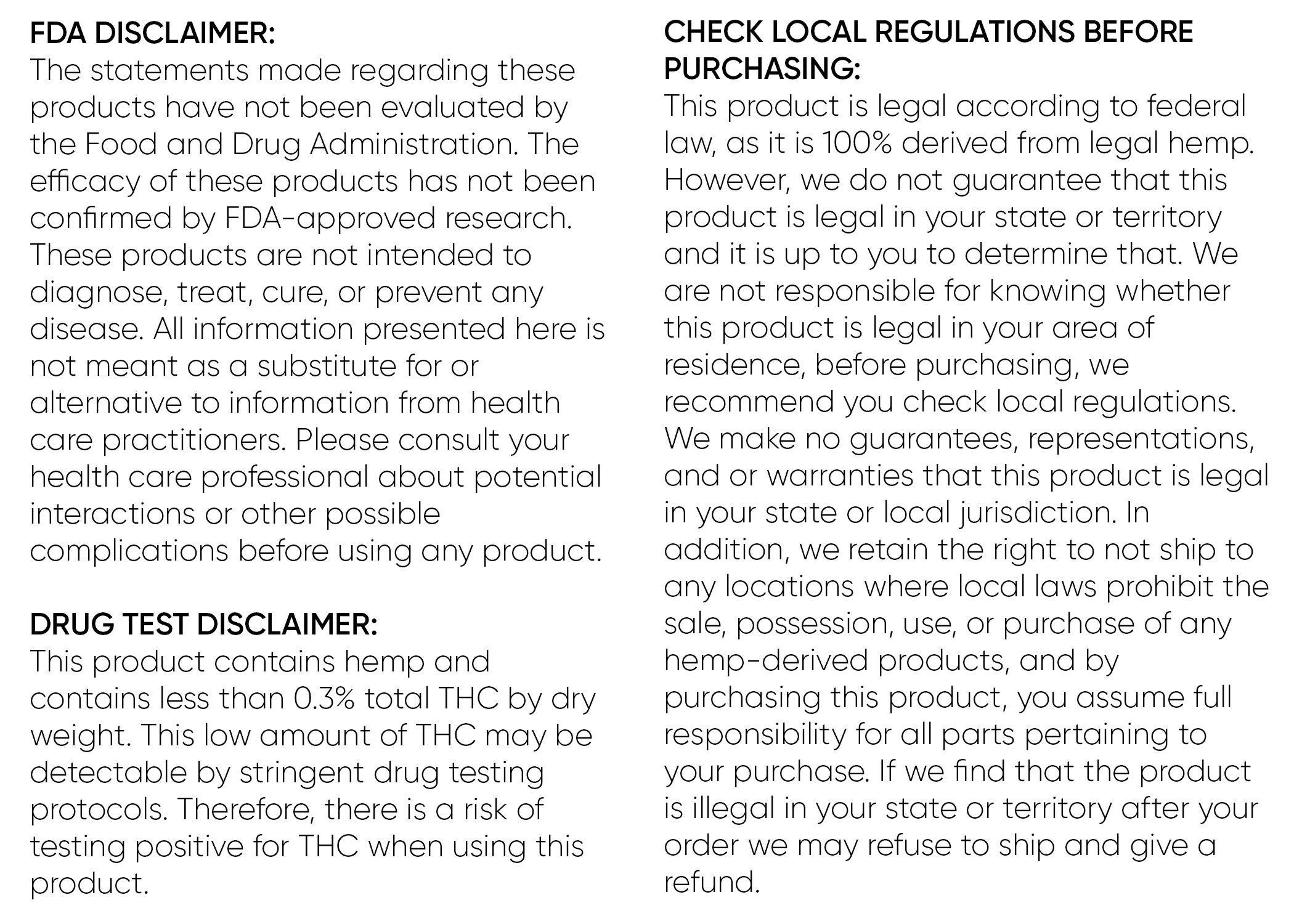 Hemp-derived products are legal at the federal level, but it’s always wise to consult local laws before consumption. Always consult with a healthcare professional before use. Remember, you must be 21 or older to purchase. Our products strictly adhere to Farm Bill guidelines, guaranteeing their legality. PRIVACY POLICY