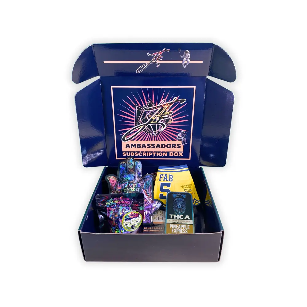 The JK Ambassadors Box is a monthly subscription box containing a curated assortment of hemp-derived products selected from JK Distro’s catalog. Each month, subscribers receive a rotating mix of premium items, designed to mirror the boxes we send to our official brand ambassadors.