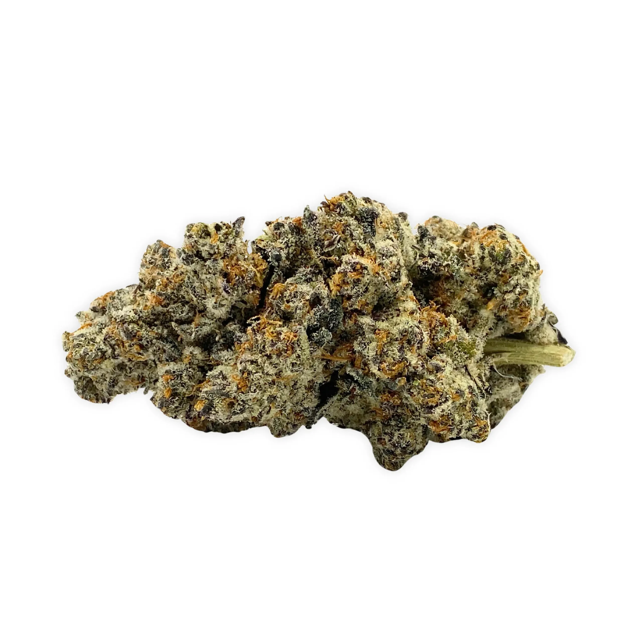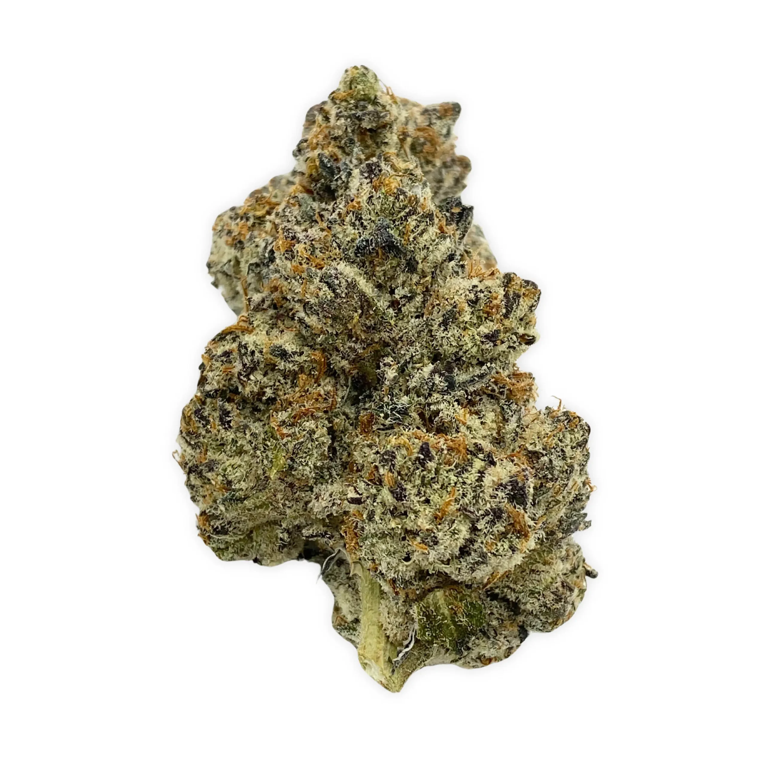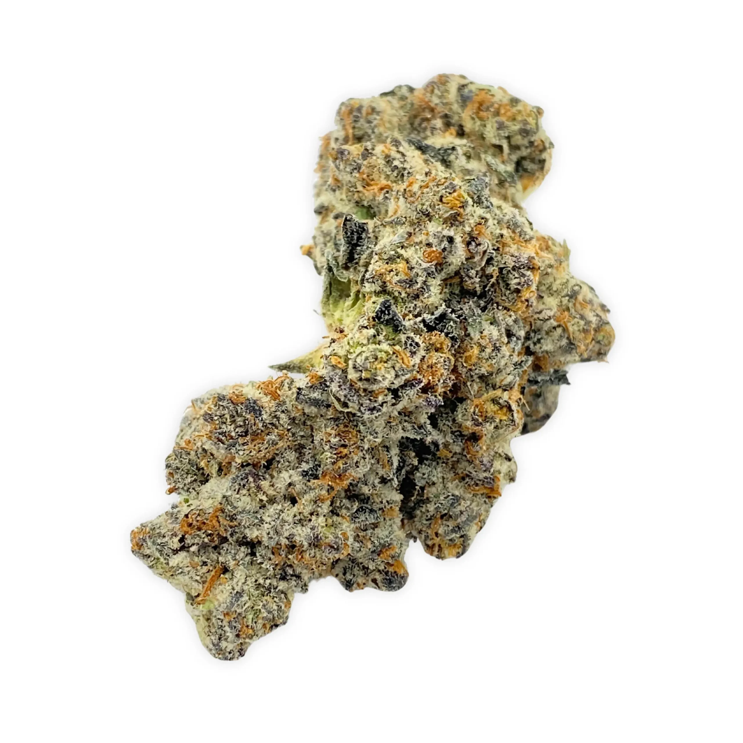 White Chocolate Chip is an indica-dominant indoor strain with dessert-inspired genetics and frosted appeal. These chunky buds are coated in snowy trichomes, blending soft green with lavender streaks and cookie-shaped structure.